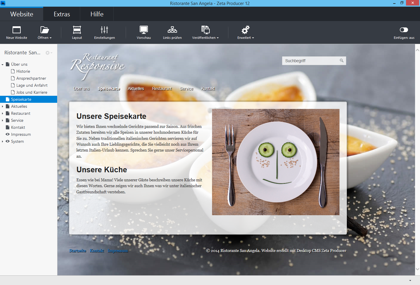 Mit Zeta Producer können Sie innerhalb weniger Minuten Ihre eigene Internet-Website veröffentlichen. Sie erzielen mit anpassbaren, professionellen Layouts einen ansprechenden und seriösen Internetauftritt, mit dem Sie Ihre Besucher stets aktuell und schnell informieren können. Überzeugen Sie sich selbst warum weltweit über 50.000 Anwender auf Zeta Producer setzen. |