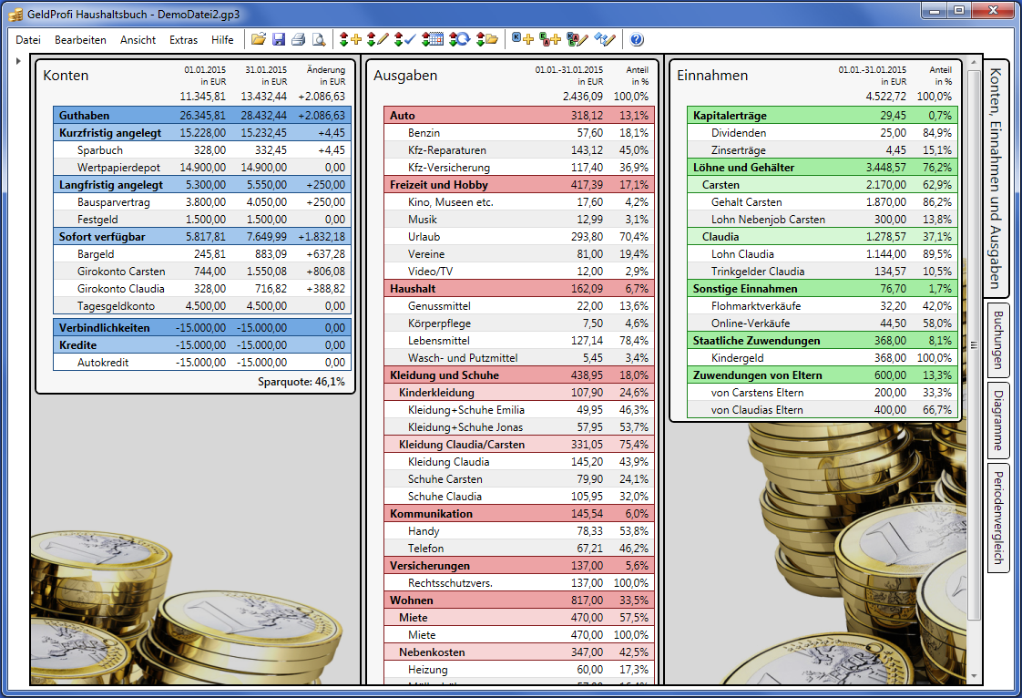 Wollten Sie schon immer wissen, wo Ihr ganzes Geld am Monatsende eigentlich geblieben ist? Verlieren Sie leicht den Überblick über Ihr Vermögen? Dieses Haushaltsbuch verschafft Ihnen den vollen Überblick über Ihre privaten Finanzen, Ihre Einnahmen und Ausgaben. Es eignet sich auch als Kassenbuch oder für die Buchführung in Vereinen und Kleinunternehmen. Vermieter können es zur Verwaltung von Mieteinnahmen und Instandhaltungskosten einsetzen. |